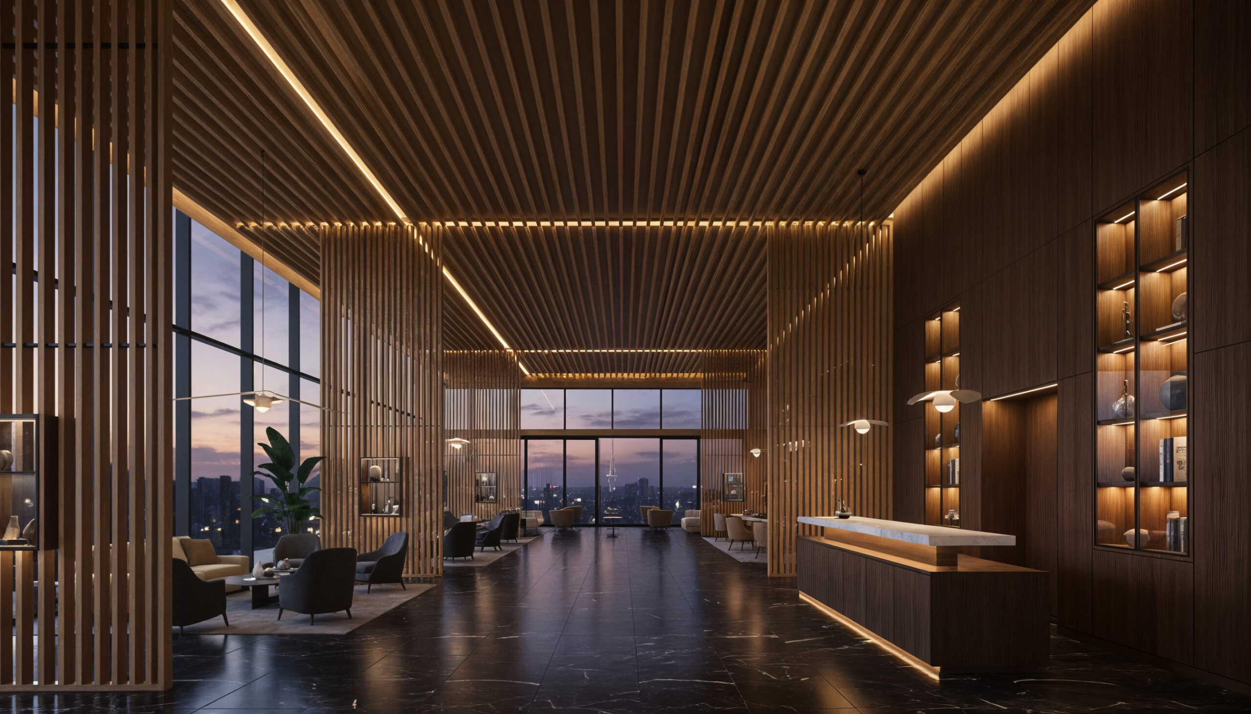 Fortina battens with Fortina QuickStick Film as a seamless solution to interiors