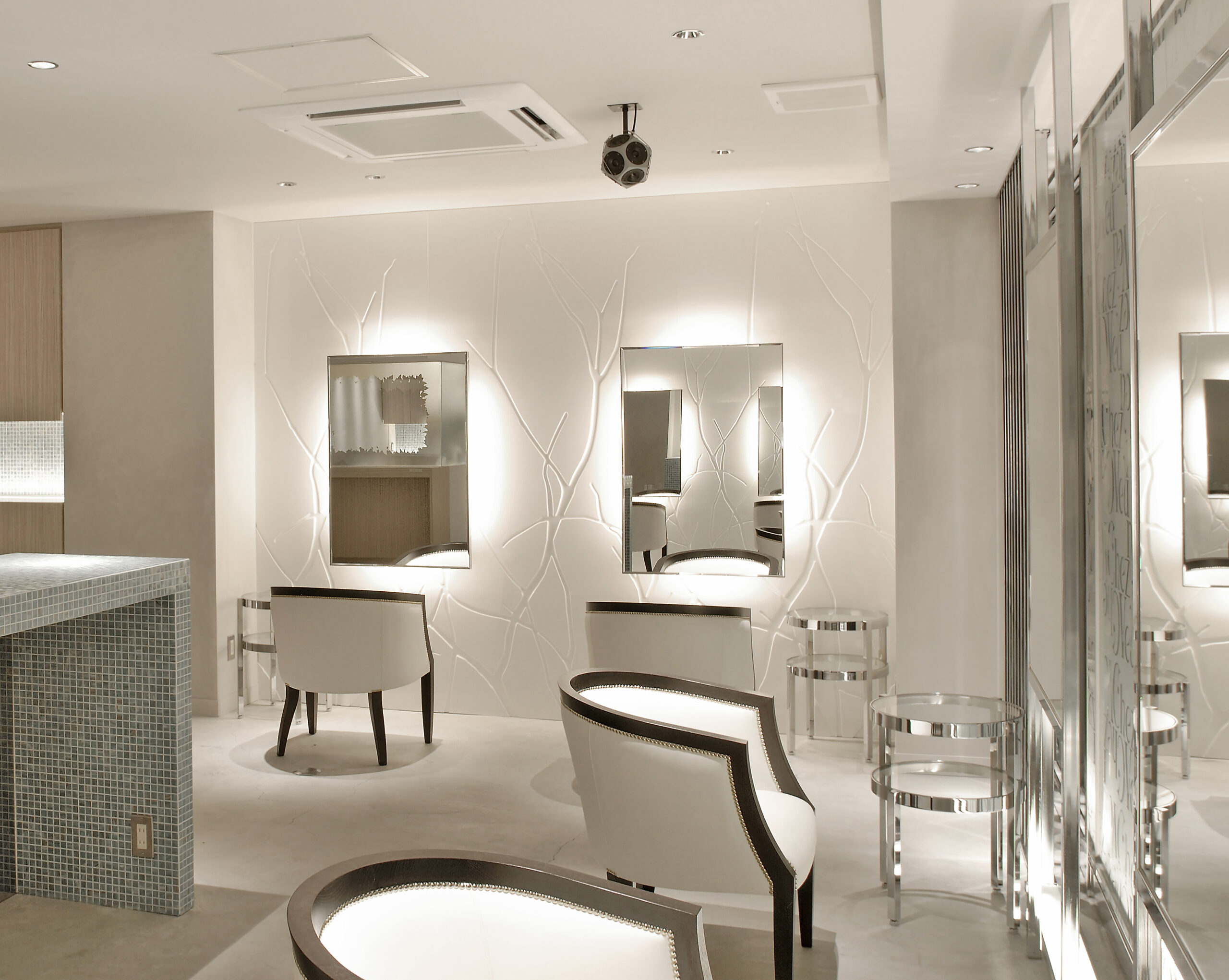 Iconic Panels are popular with salons as they are easy to clean, as seen here at a salon in Tokyo, the Plaza hotel, and the Ritz Carlton