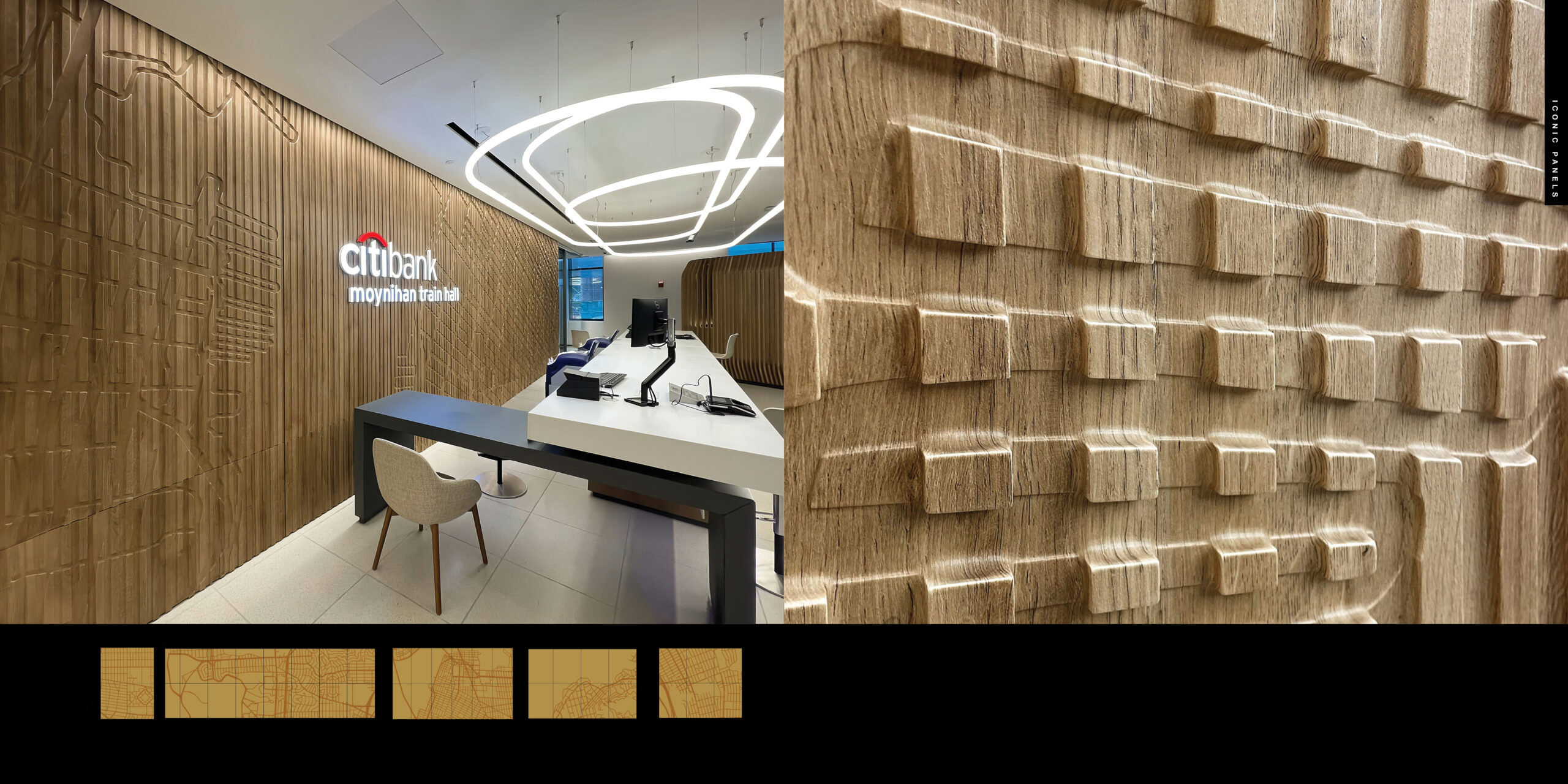 Mapping An Approach: Citibank’s branches have local custom maps per location, produced in 3d and Infused Veneer and Iconic Panels, made efficient with a proprietary partnership with Google Maps.