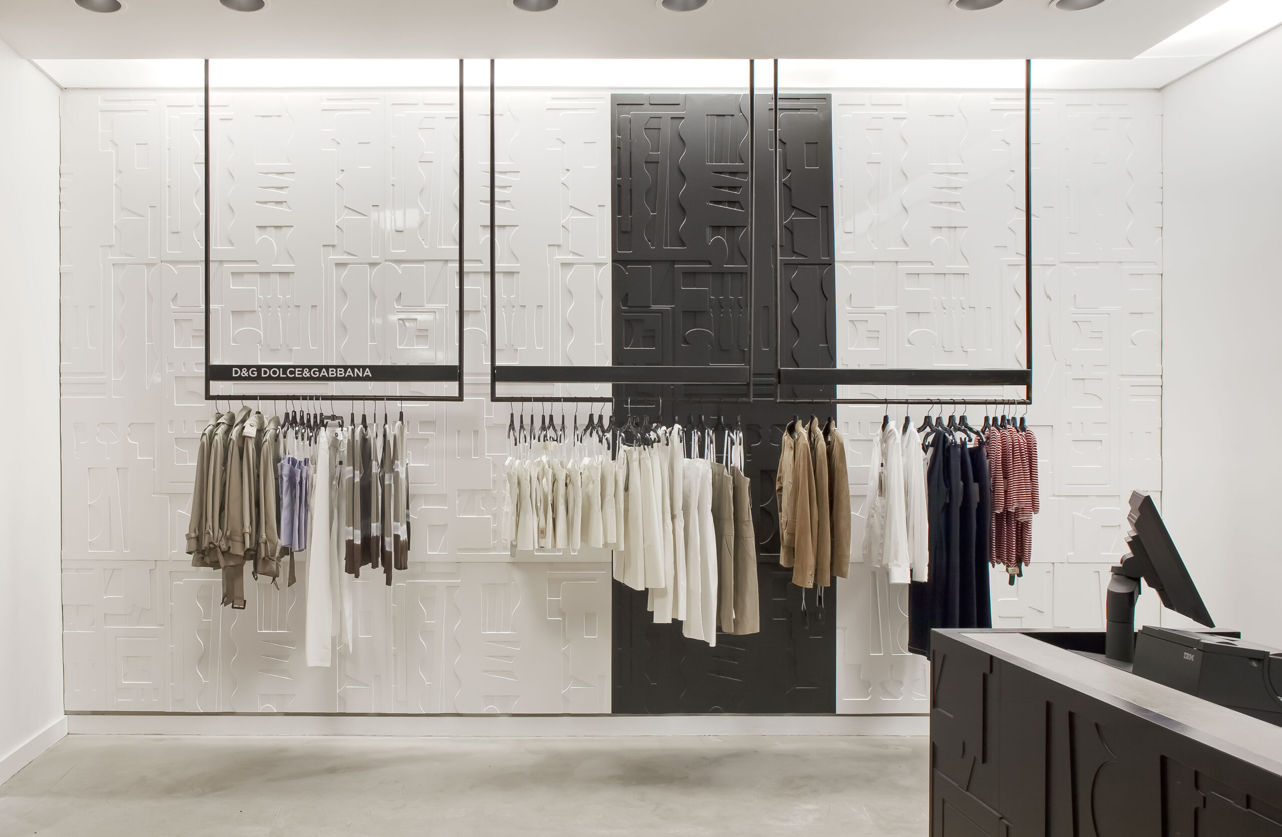 A custom pattern referencing swirls of dark chocolate at the Godiva flagshop store, New York.