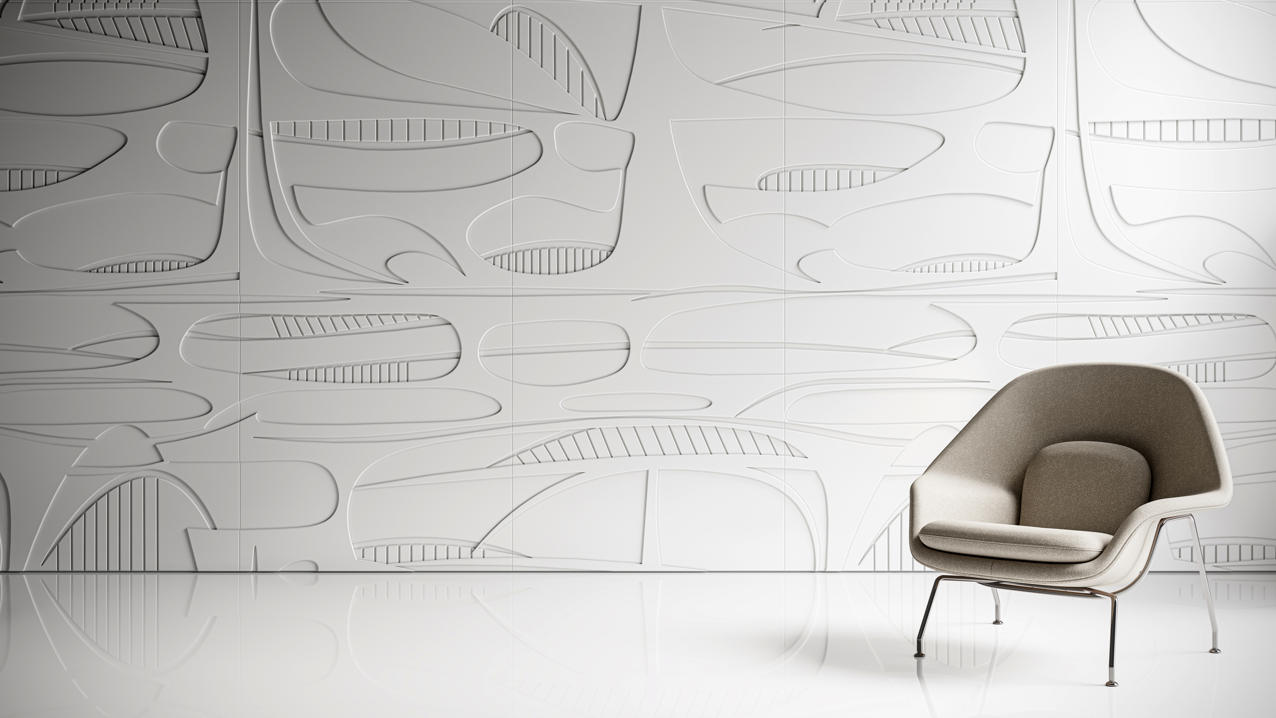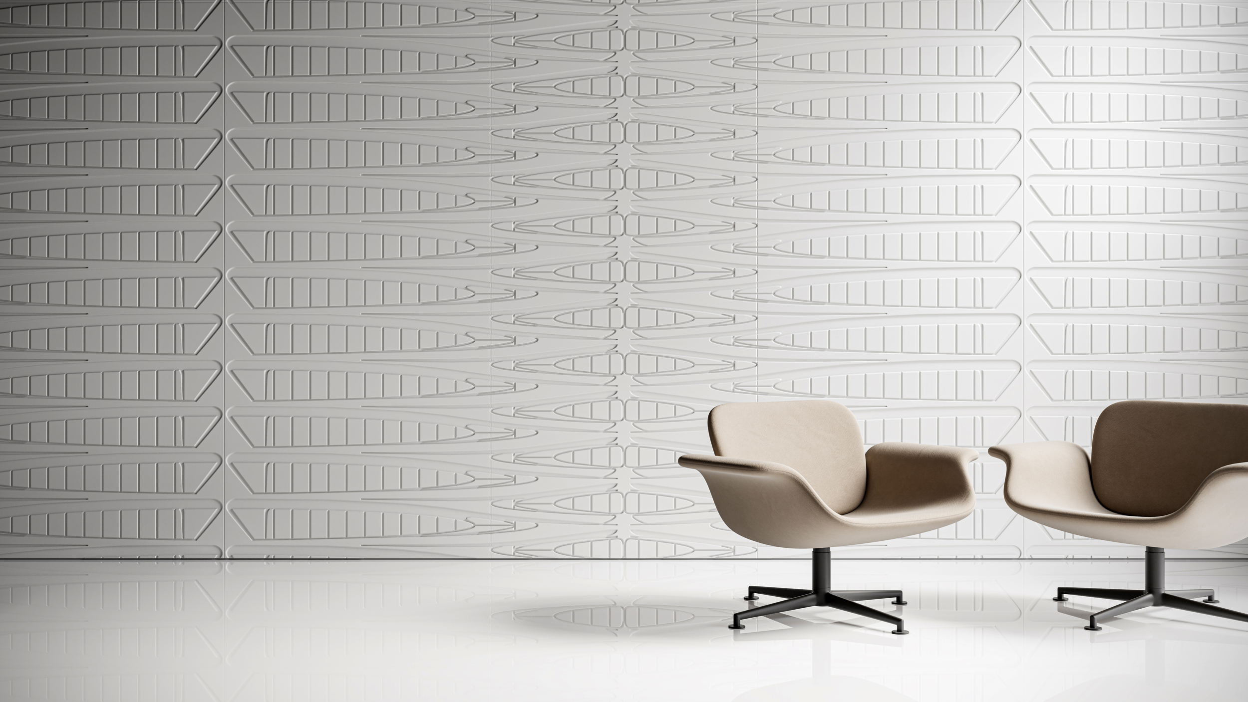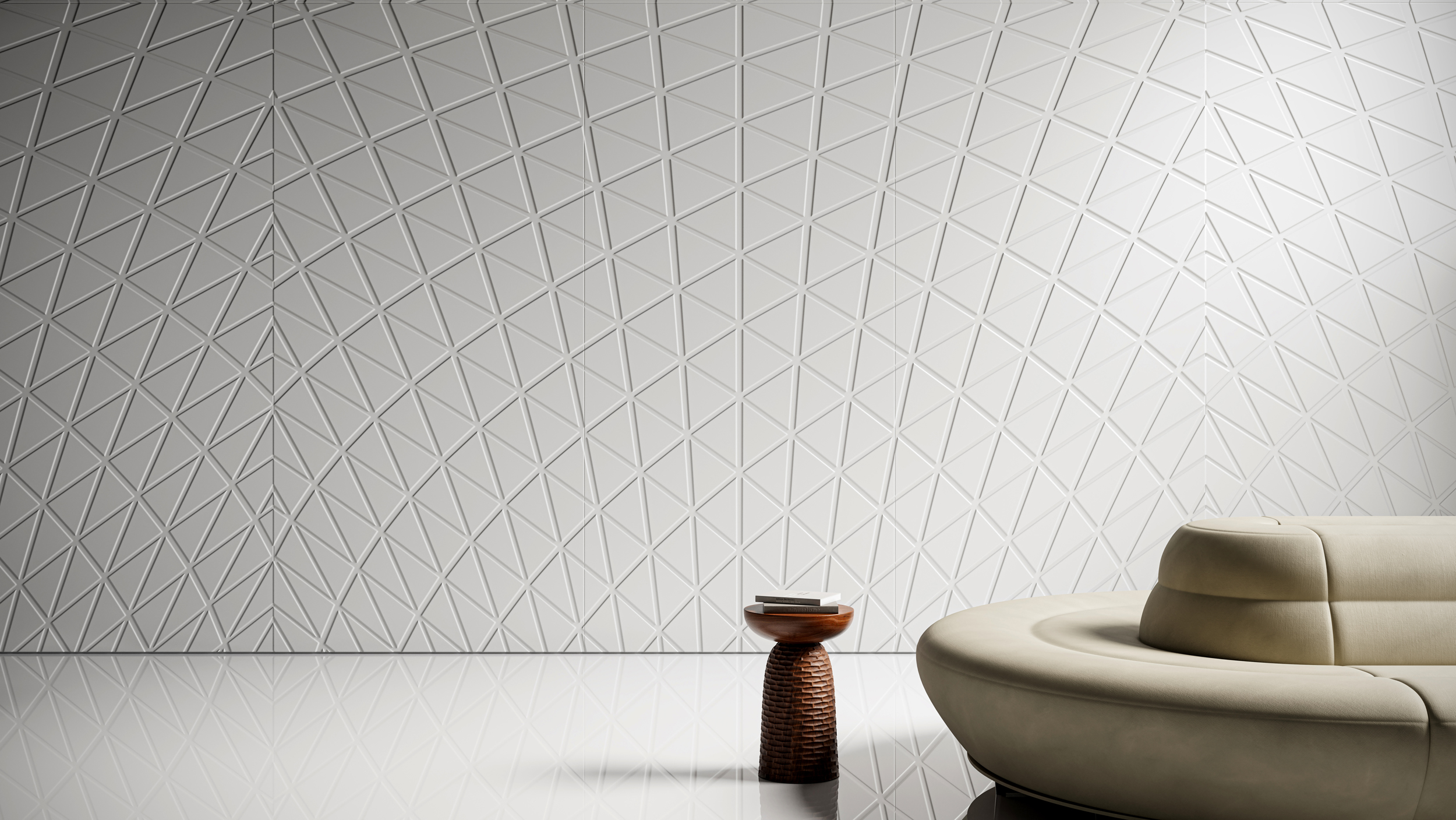 Here, the pattern Norman in Matte White, inspired by the great British architect.