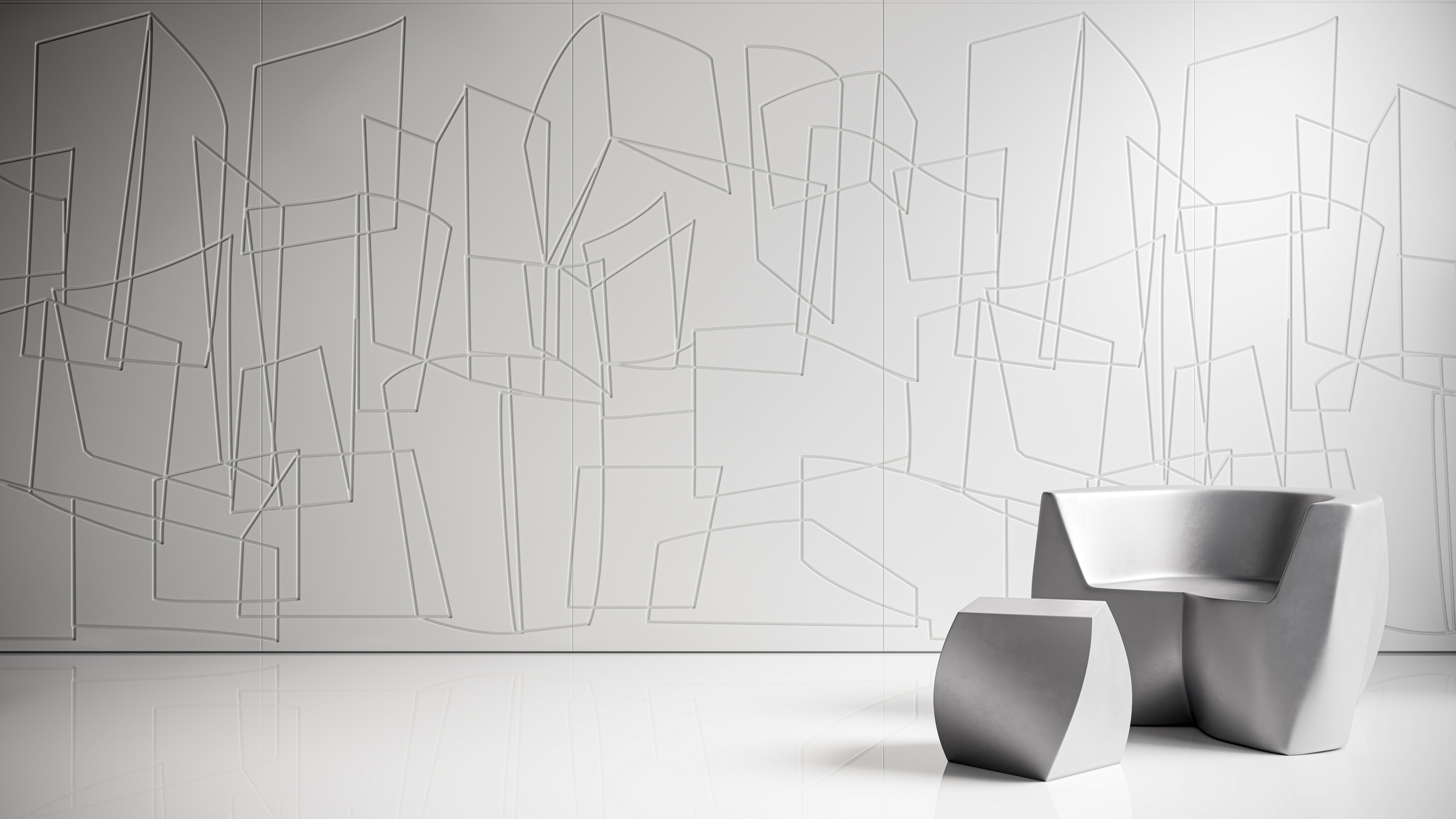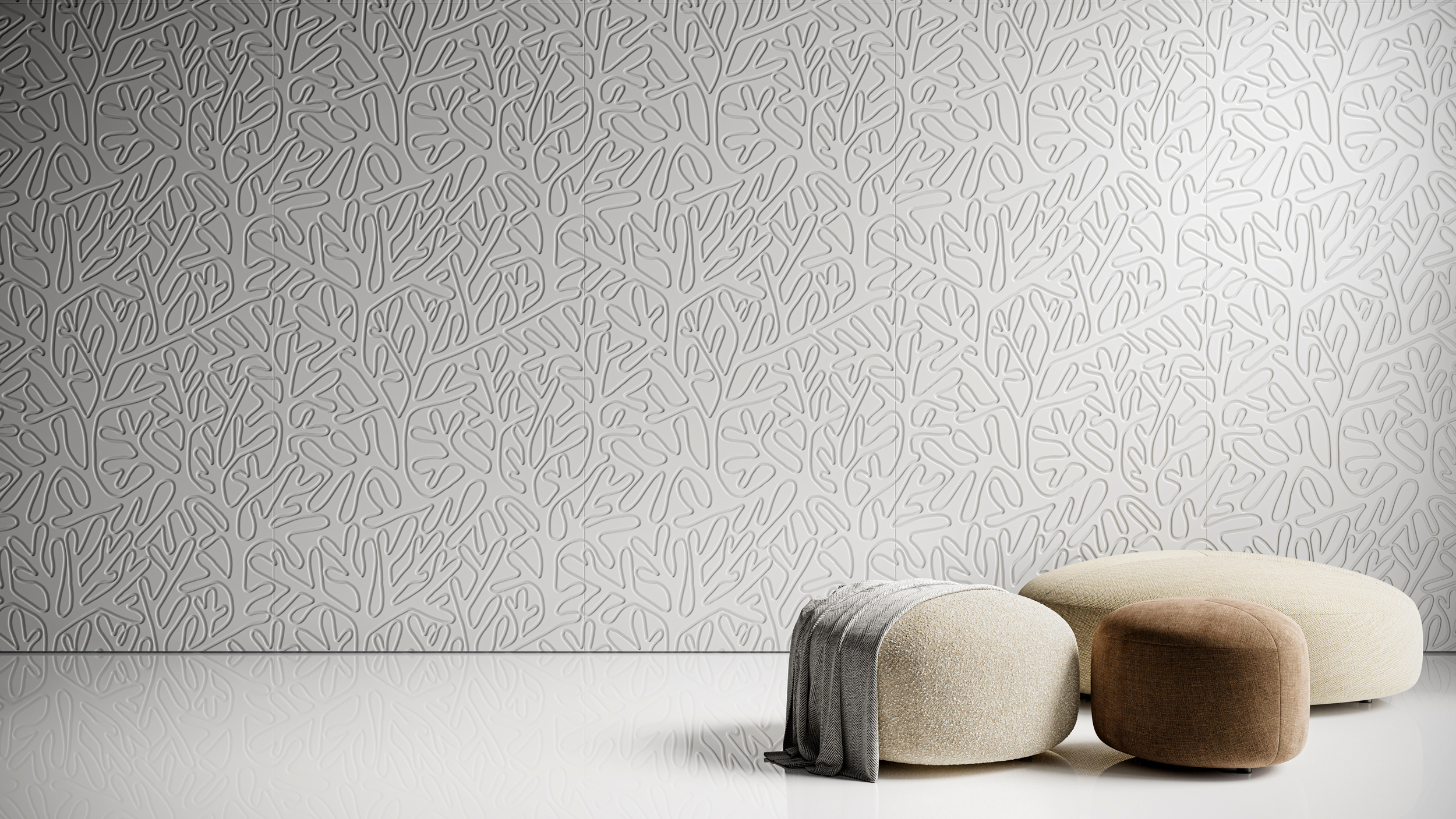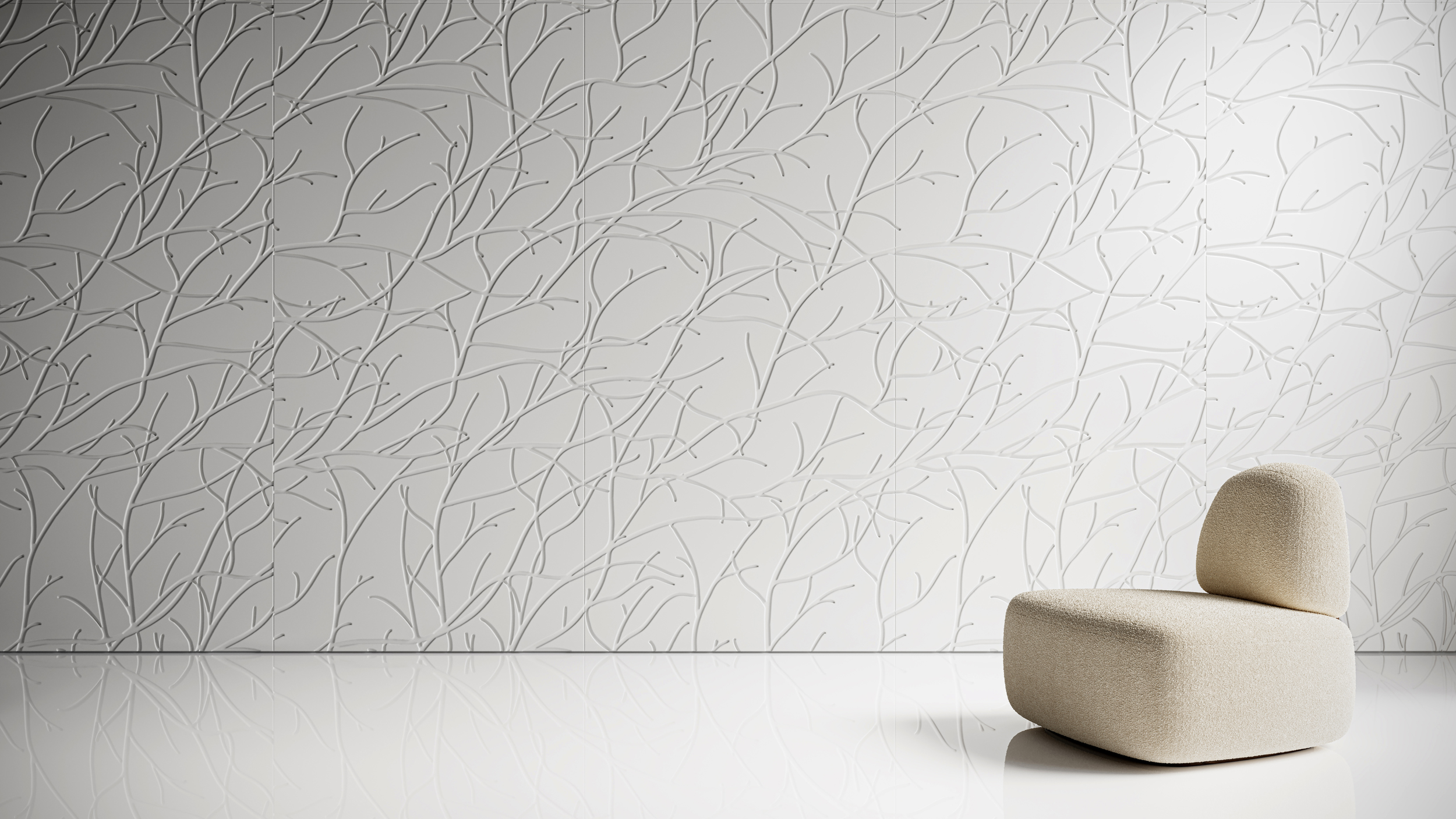 Here, the pattern Norman in Matte White, inspired by the great British architect.