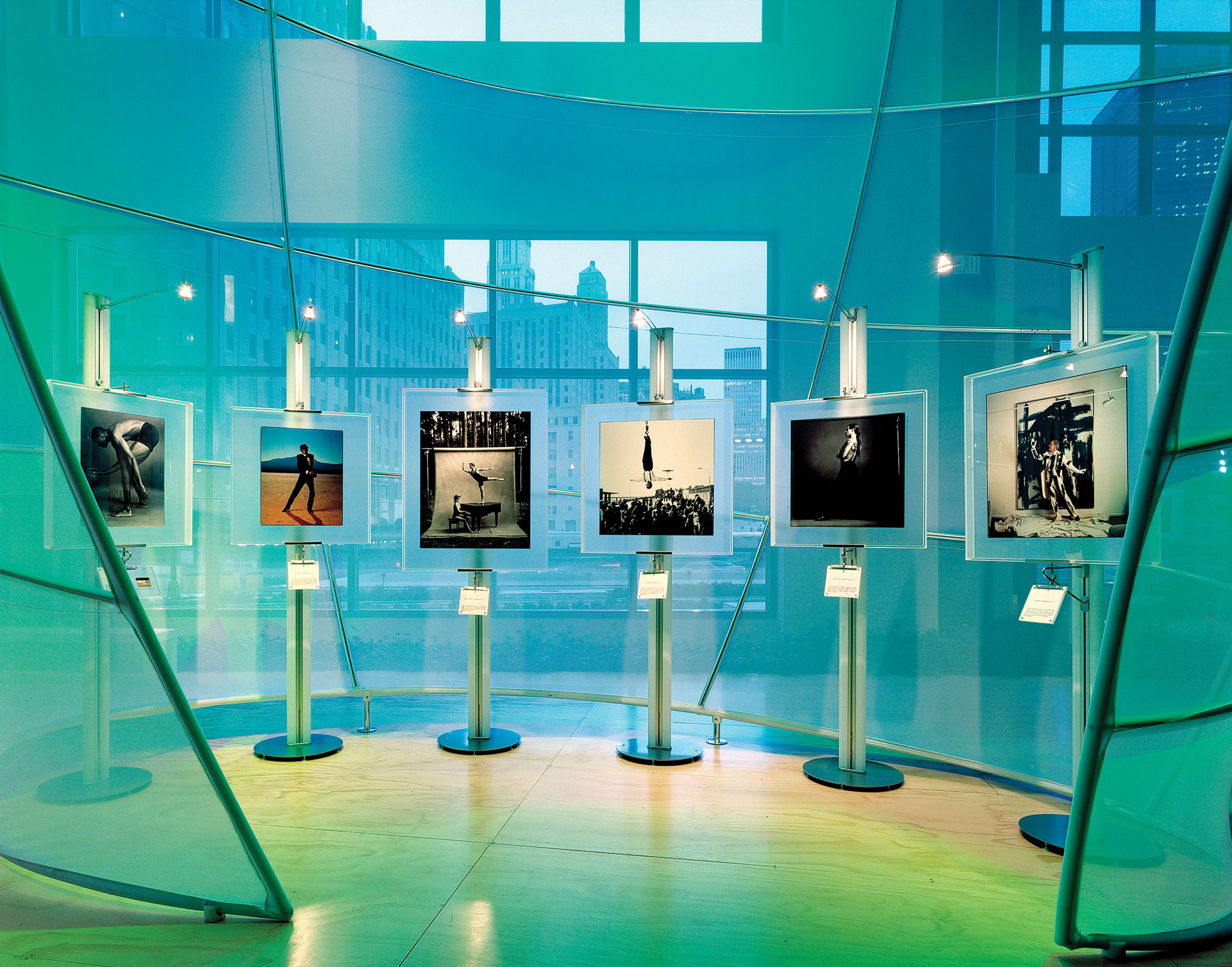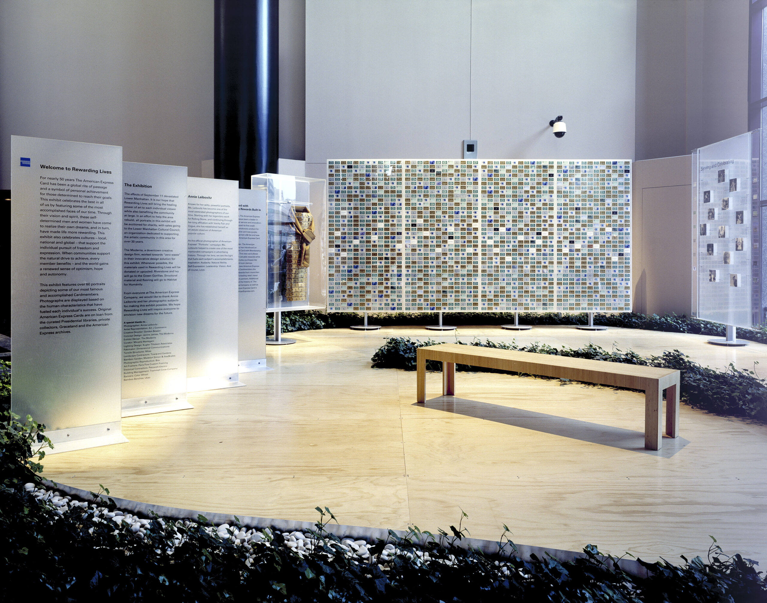 Above, Sorbetti display photos by Annie Liebovitz in the exhibit “Rewarding Lives”, commemorating the attacks on 9/11 at the American Express Tower, formerly known as Three World Trade Center, one of the first buildings to re-open after Ground Zero was deemed safe.