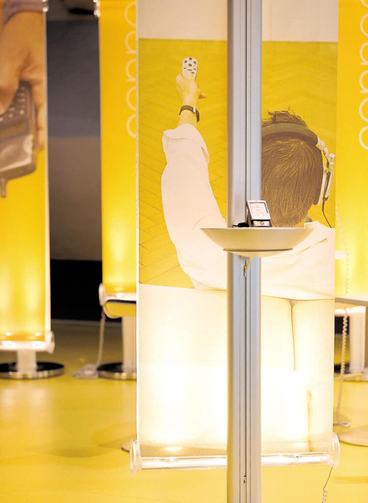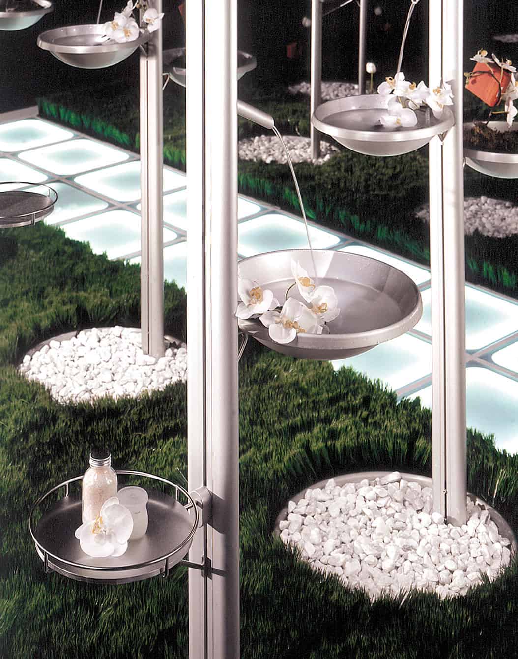 At this exhibit, Sorbetti was used with water fountains to create a spa-like atmosphere, as well as carrying lit fabric graphics that pulled down like a window shade.