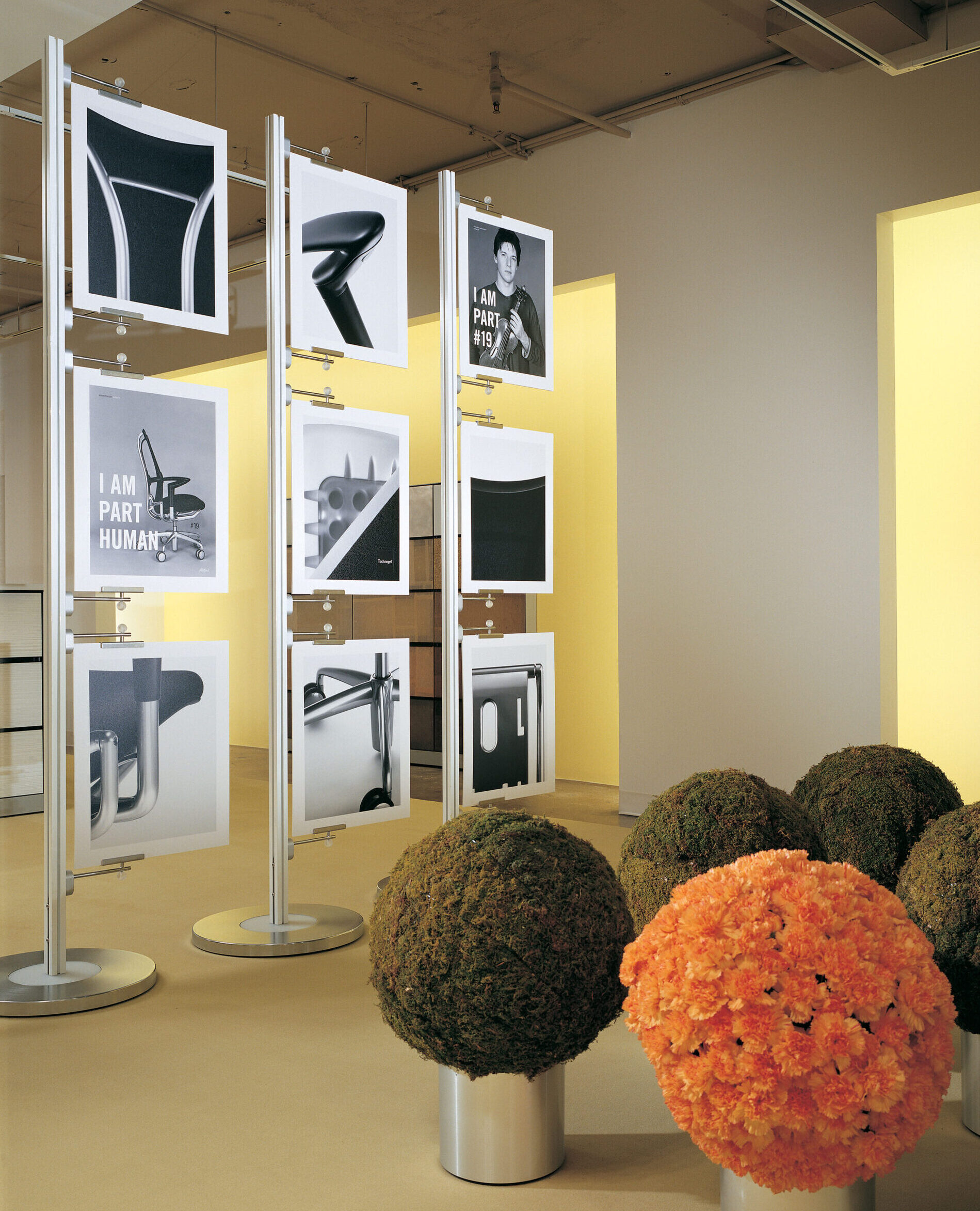 At Allsteel showrooms, Sorbetti was used with Spanning Panels in frosted acrylic and the Puck System to house hundreds of fabric samples, as well as signage in the Humanscale showrooms.