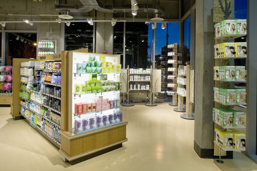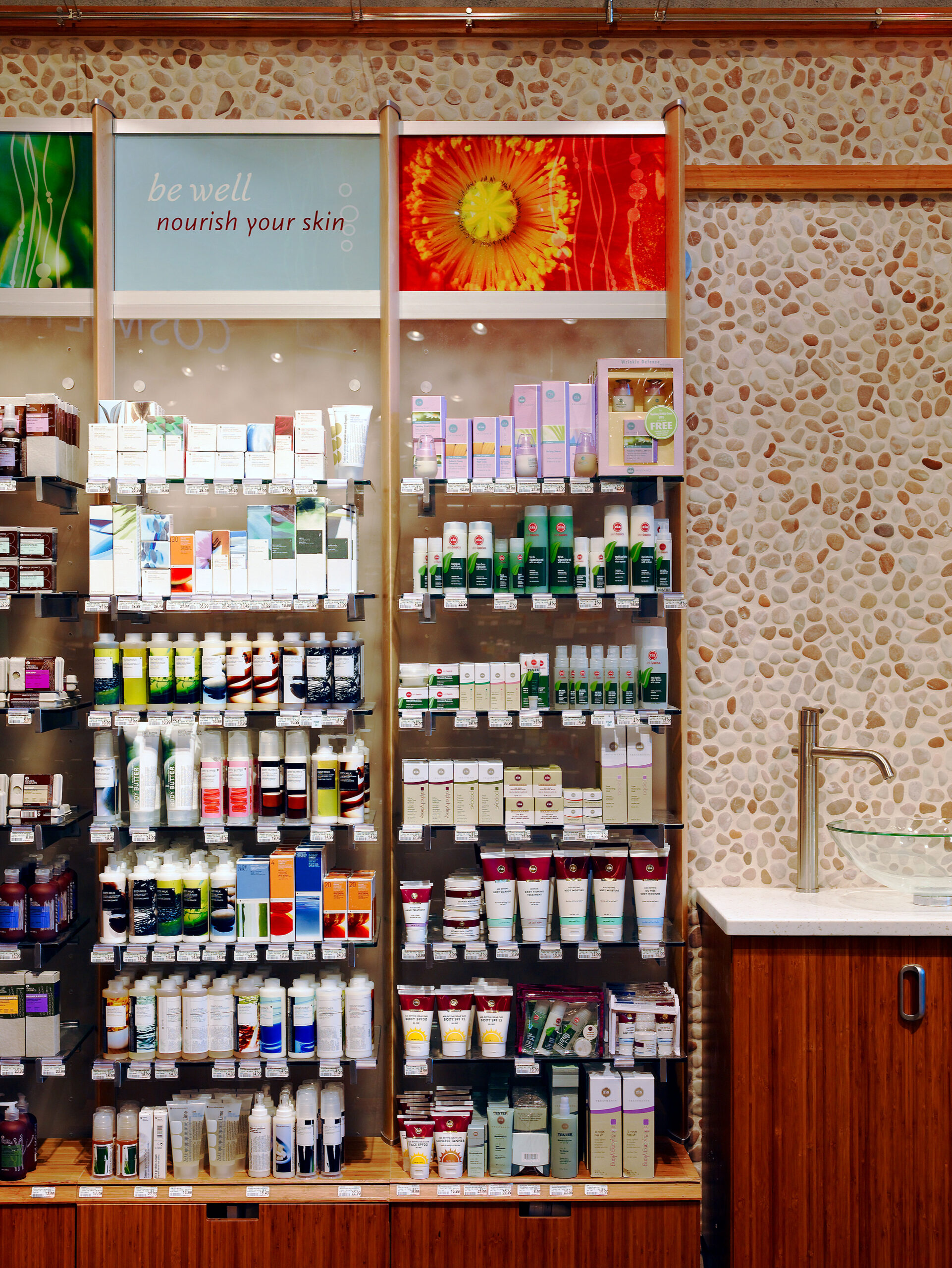 At Whole Foods Markets, Sorbetti with maple Sliders in various custom stains provides perimeter and endcap solutions for their health and skincare sections.