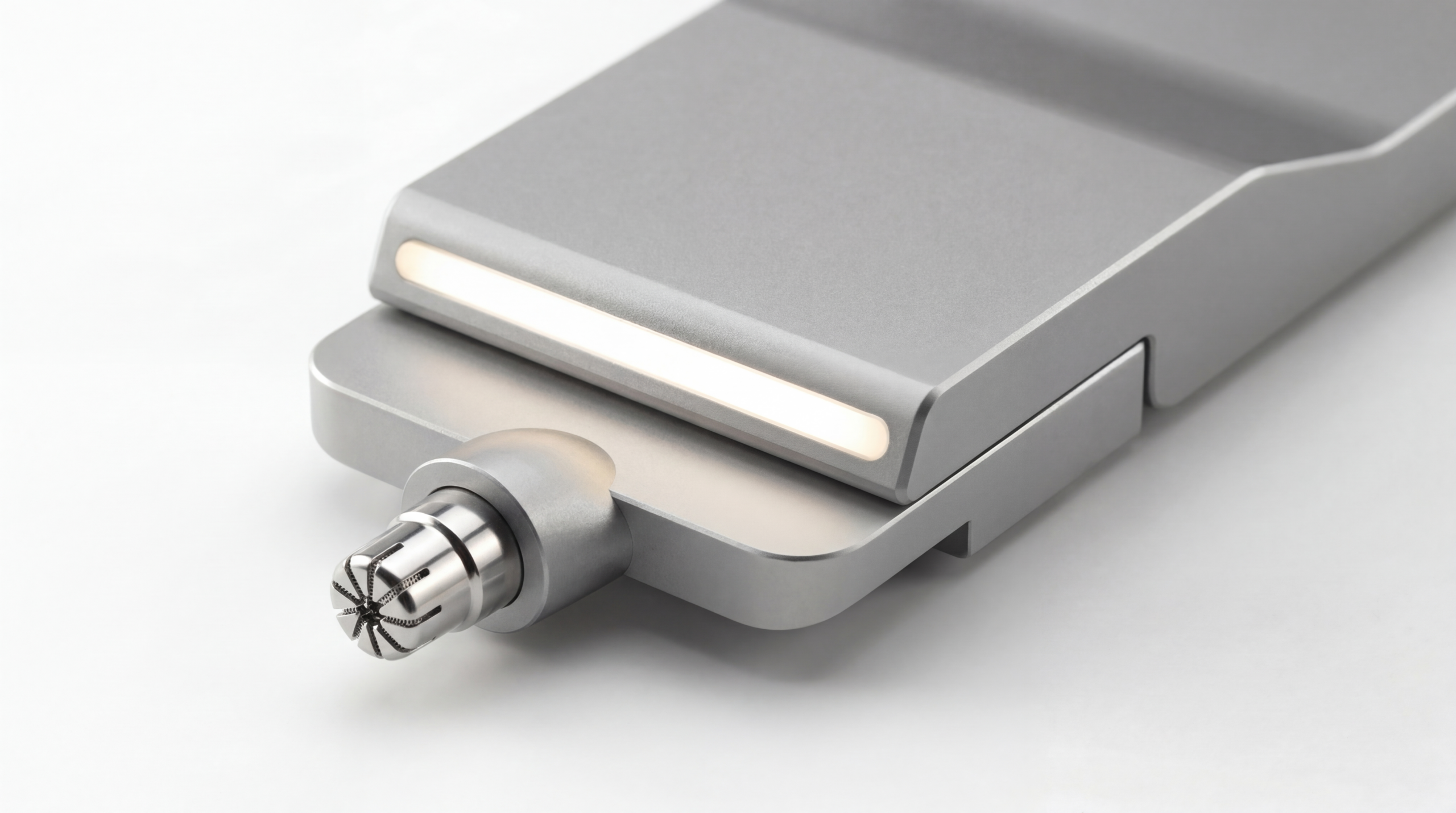 The flat aluminum tablet form factor came first — a handle that felt like a precision instrument rather than a consumer product. The modular head system followed directly from that premise. Six heads. One body. One decision at the counter instead of six.