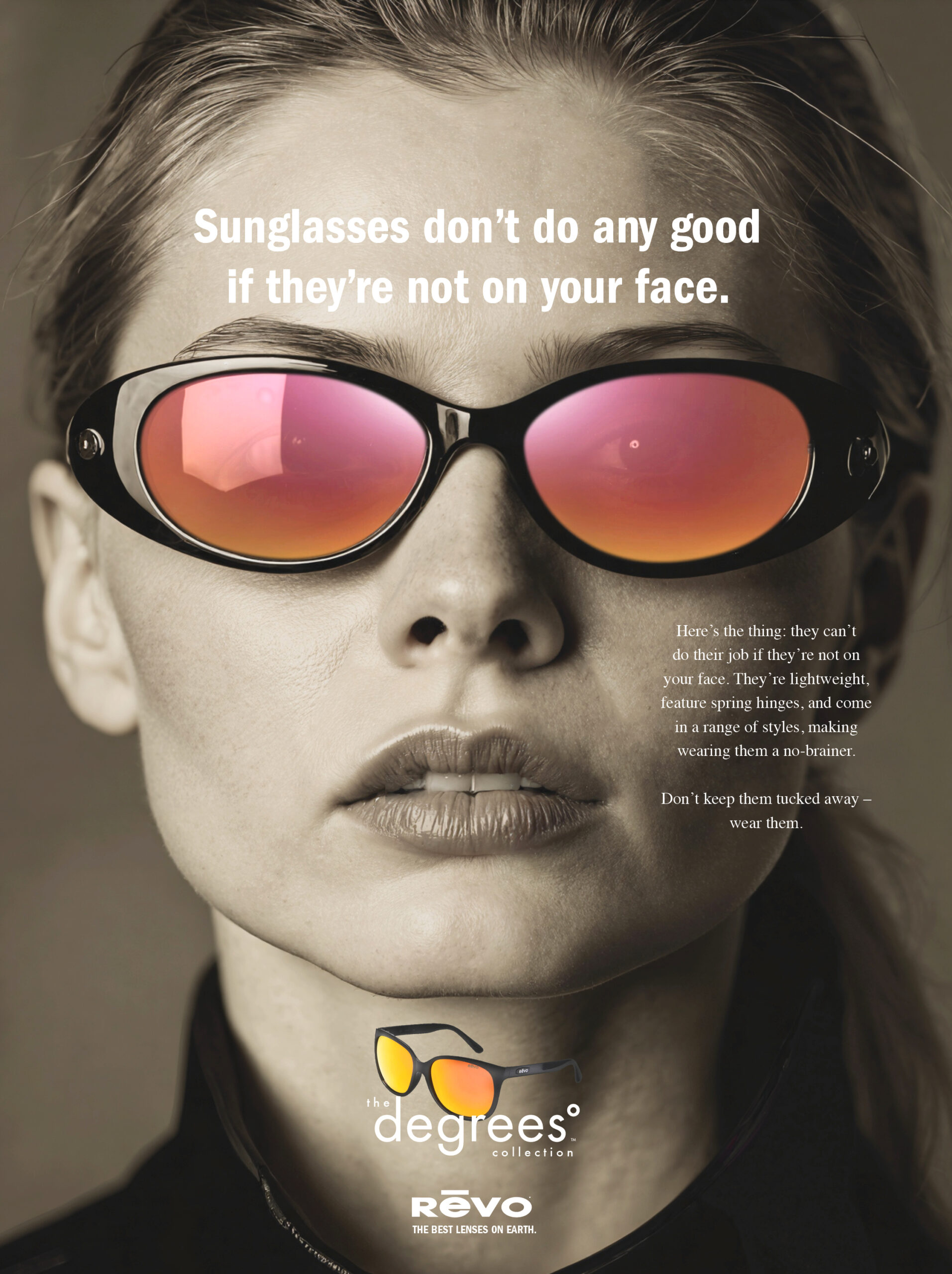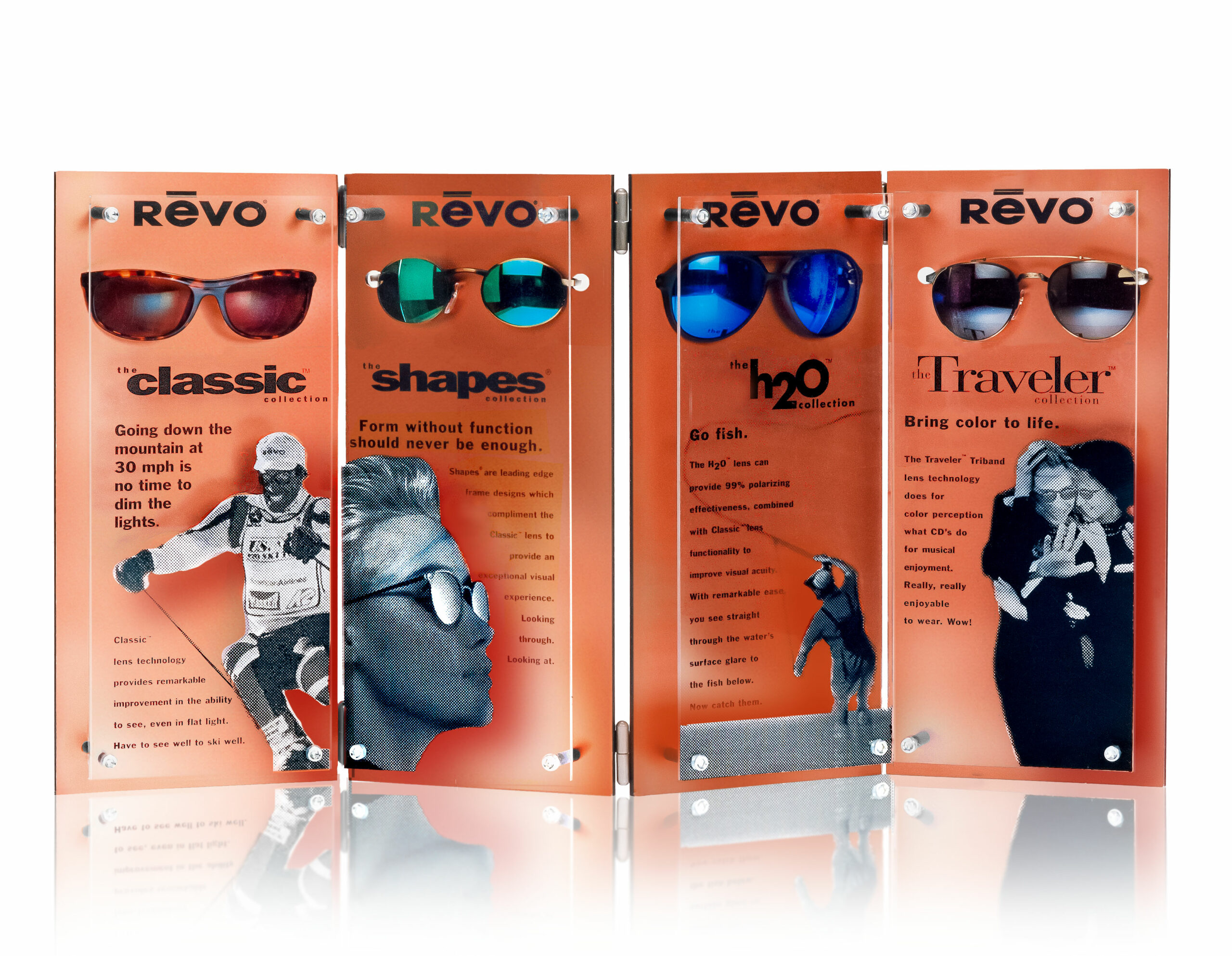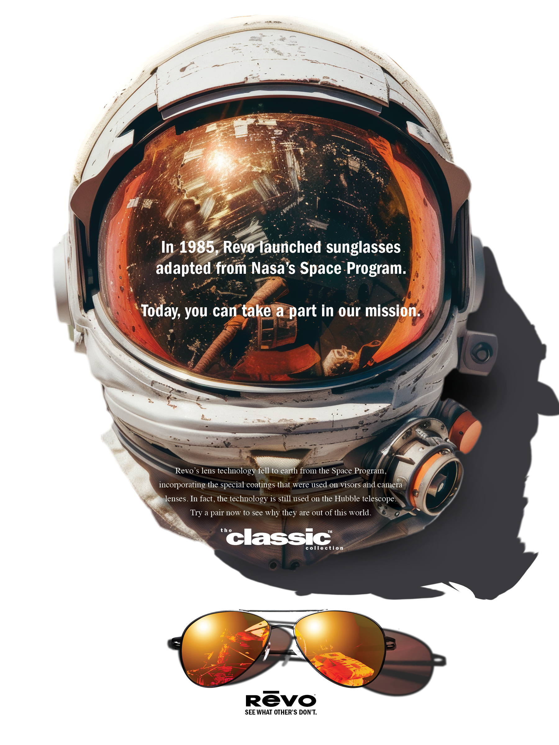 As contract Creative Director, I built on that momentum, shaping targeted campaigns for brand loyalists, skiers, technophiles, fashion-conscious women, water sports enthusiasts, and competitive athletes. Through bold advertising, immersive in-store branding, and engaging contests and incentives, we delivered a cohesive voice and aesthetic that elevated Rēvo’s presence across all touchpoints.