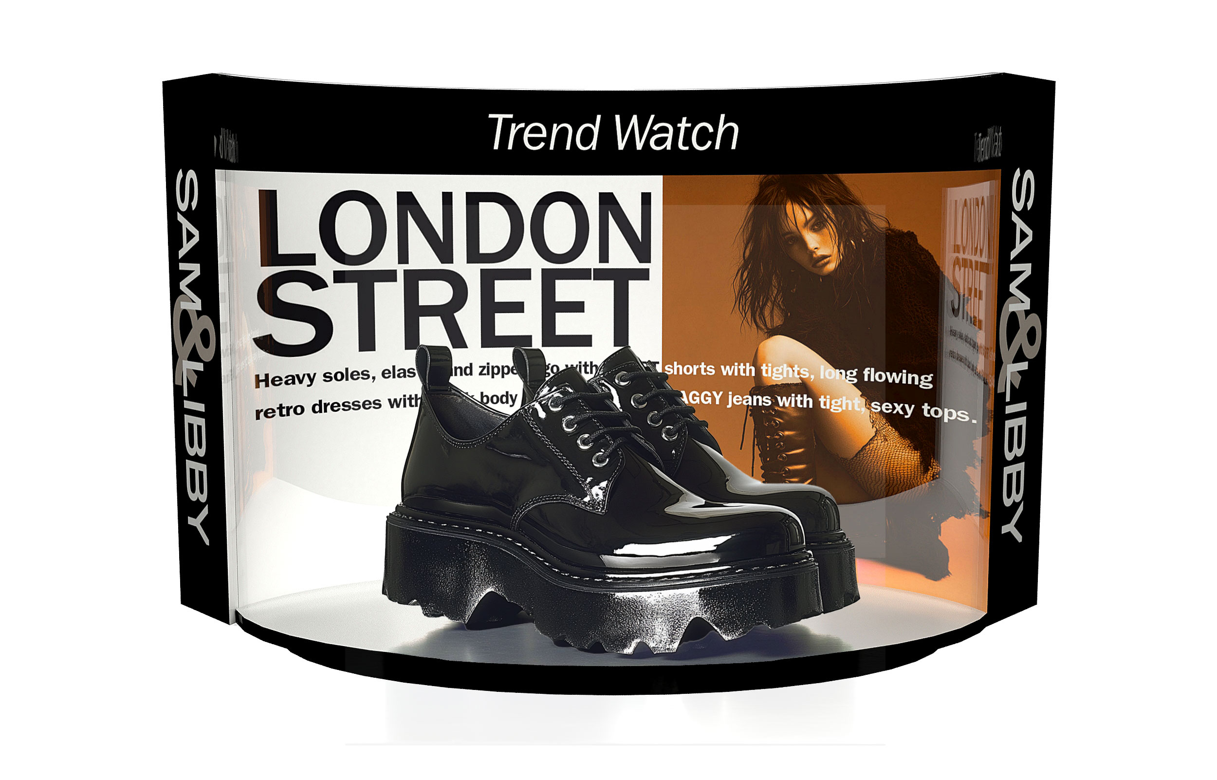 The in-store programs were developed to feature different trends and show how to seamlessly integrate footwear into a cohesive fashion statement with tabletop top displays with graphics to large hanging graphics. These positioned Samm&Libby as fashion experts.