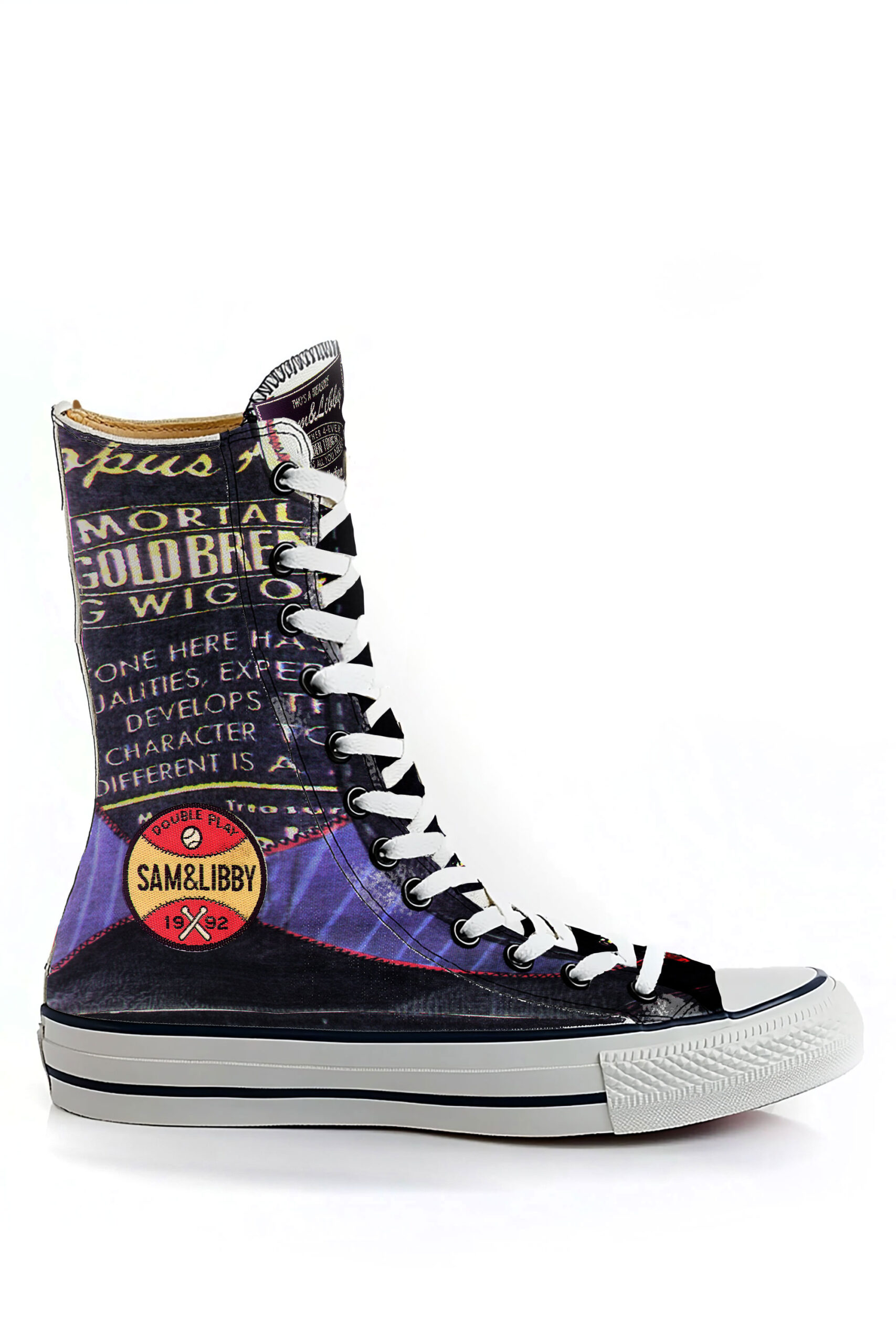 With the invention of digital printing on canvas and vegan leather, this Sam&Libby Sport Collection used vintage imagery and bold typography which re-defined the term “kicks”.
