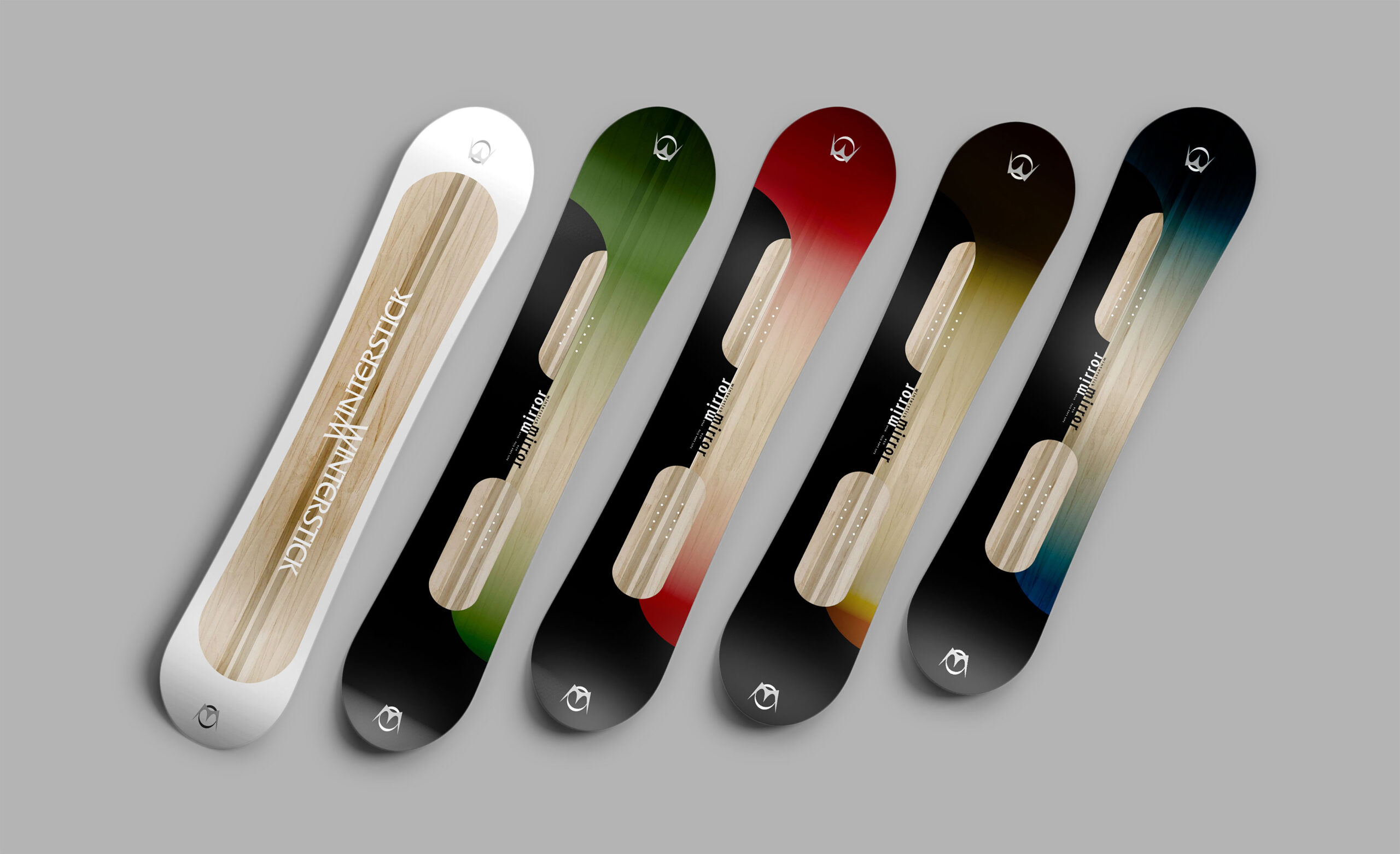 Five collections with distinct rider personalities, unified through complementary colorways and a consistent graphic approach. The designs lean modern and refined, avoiding the loud, skatepark graphic trends common in other brands. Each board incorporates a transparent window that showcases the construction beneath.